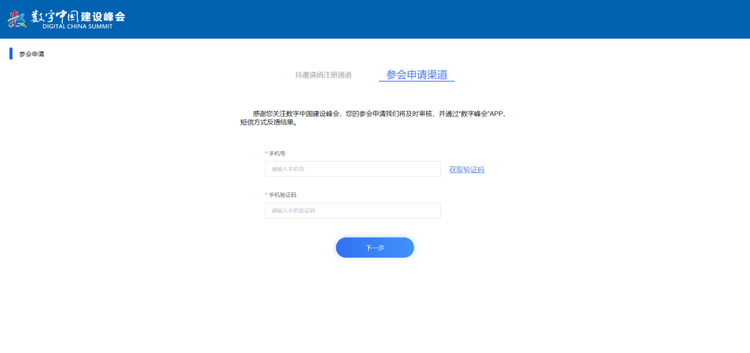 2.切换至“参会申请渠道”页面进行填报。