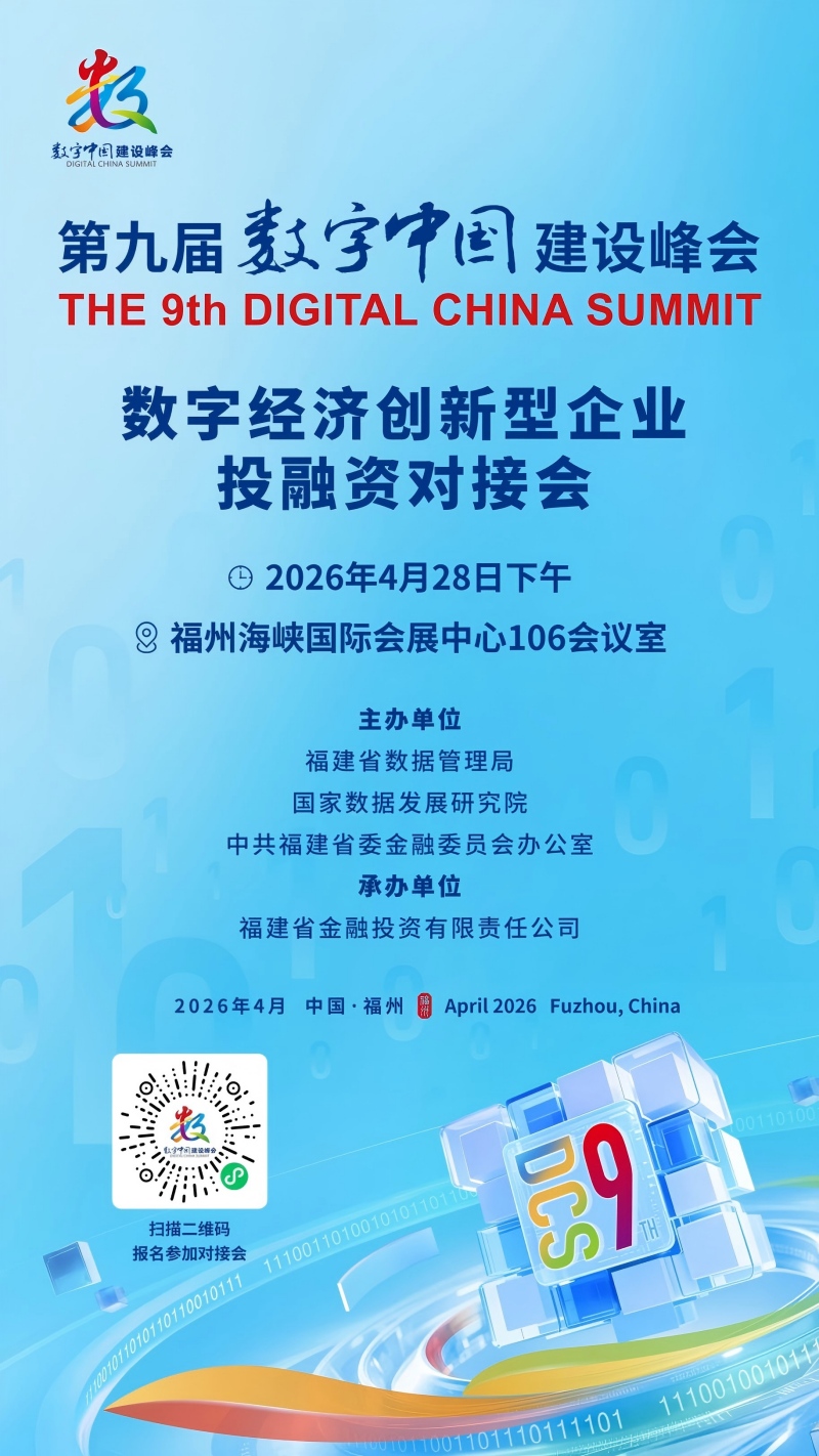 数字经济创新型企业(简称数创企业)是驱动数字经济高质量发展的重要力量。为精准打通数创企业融资堵点、链接产业资源、强化政策协同,在国家数据局、福建省人民政府等部门推动下,福建省数据管理局、国家数据发展研究院、福建省委金融办联合主办,福建省金融投资有限责任公司承办的数字经济创新型企业投融资对接会,将于4月28日下午在福州海峡国际会展中心106会议室隆重举办。