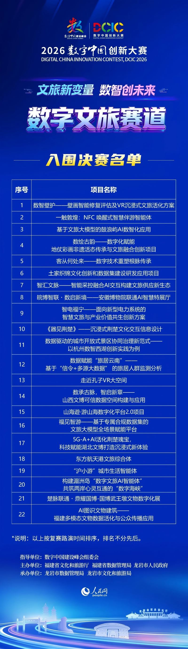 2026数字中国创新大赛·数字文旅赛道入围决赛名单