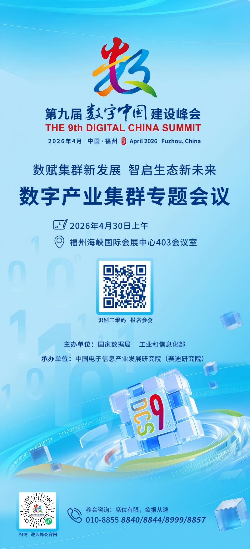 4月30日上午,由国家数据局、工业和信息化部主办,中国电子信息产业发展研究院承办,以“数赋集群新发展,智启生态新未来”为主题的数字产业集群专题会议将在福州海峡国际会展中心403会议室隆重举办。本次会议将汇聚有关部门、地方、知名专家,以及典型集群园区代表、数据集团、科研院所、金融投资机构、高校等多元嘉宾,重点就数字产业集群的内涵特征、发展趋势、建设路径等开展深入交流,推动凝聚集群发展共识、深化集群开放合作、促进集群生态共建。