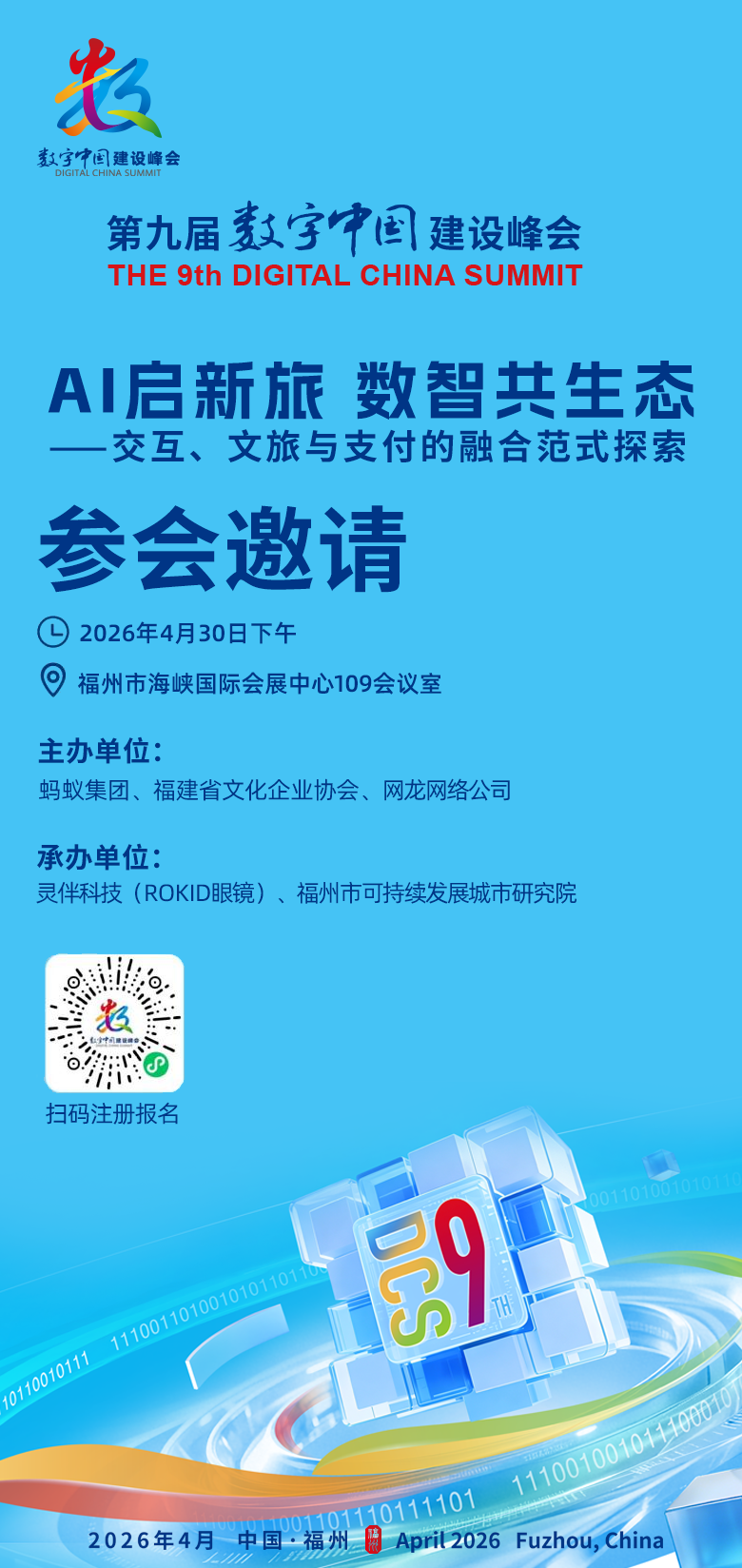作为第九届数字中国建设峰会的重要系列活动之一,“AI启新旅·数智共生态——交互、文旅与支付的融合范式探索”主题交流活动即将开启,该活动由蚂蚁集团、福建省文化企业协会、网龙网络公司主办,由灵伴科技(Rokid眼镜)、福州市可持续发展城市研究院承办。