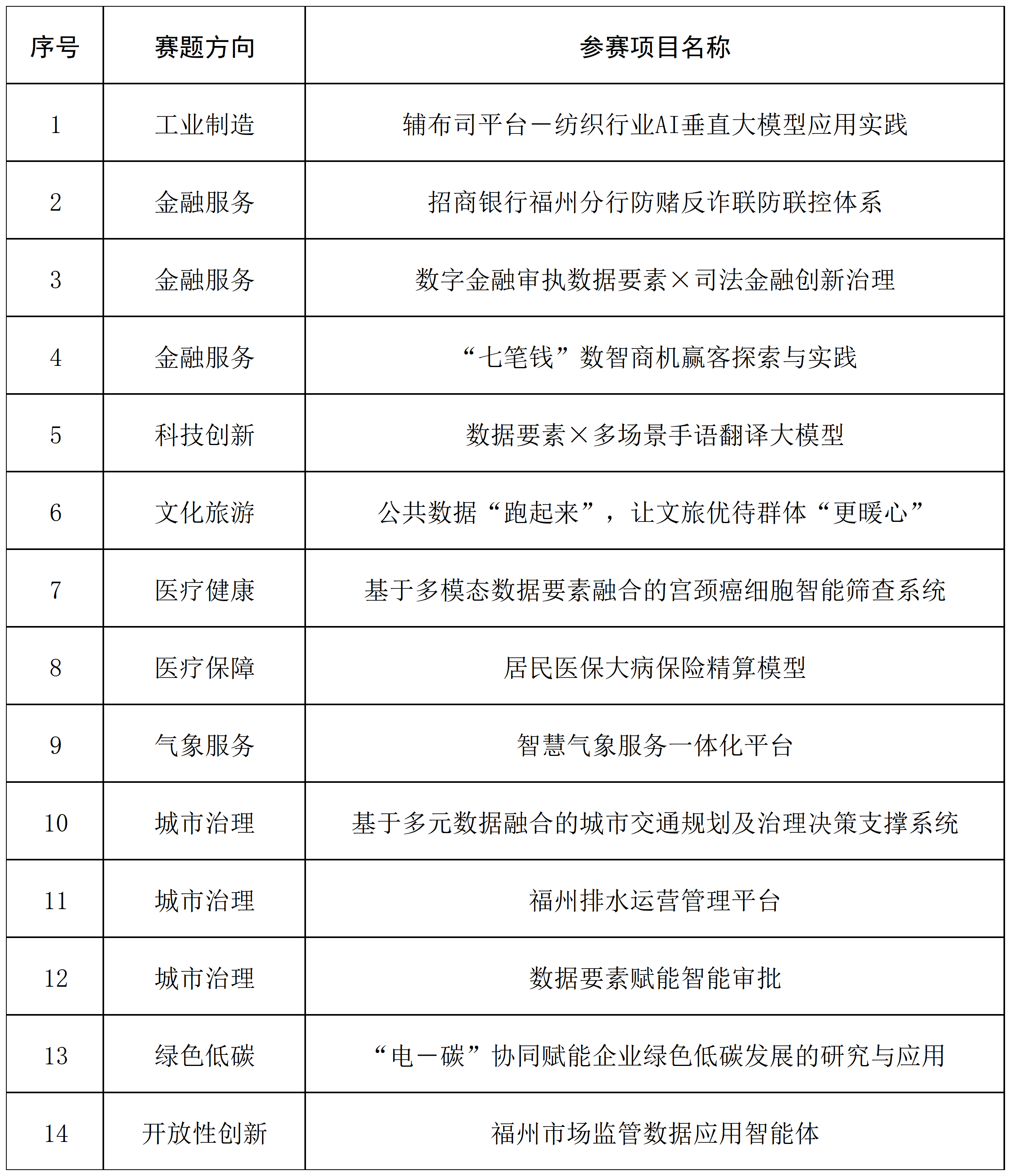 福州市推荐参加2025年“数据要素×”大赛福建省分赛决赛项目名单