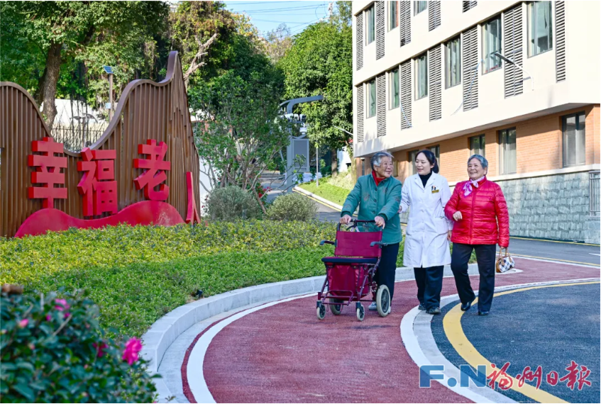 福州市社会福利院内,医护人员正陪着老人散步(资料图)。石美祥 摄